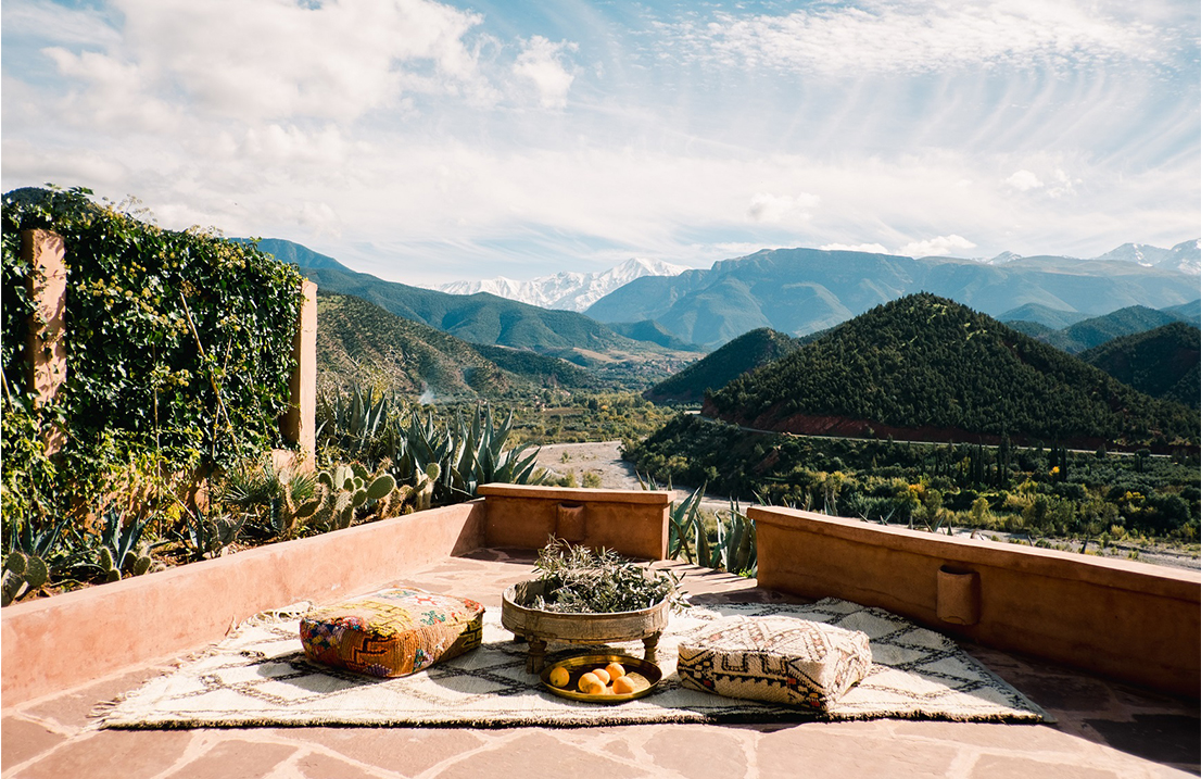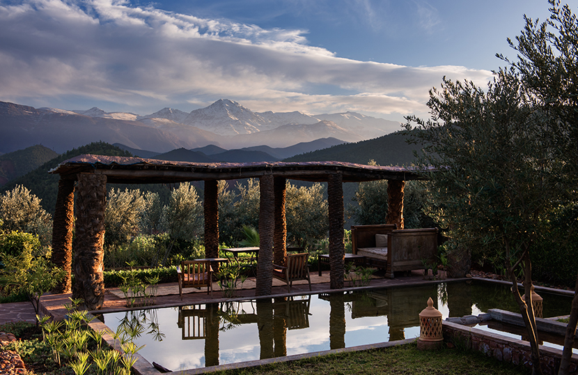 Set at the mouth of the stunning Ourika Valley in the High Atlas Mountains of Morocco, this stylish boutique hotel has panoramic views across green fields, fruit trees, and olive groves to distant and dramatic snowy mountain peaks. Each uniquely decorated room has a private terrace from which to soak in the views, a true retreat from the fast-paced cities below. Combining modern touches with traditional décor, the result is breathtakingly sumptuous suites where you can enjoy the scenery in the utmost luxury.