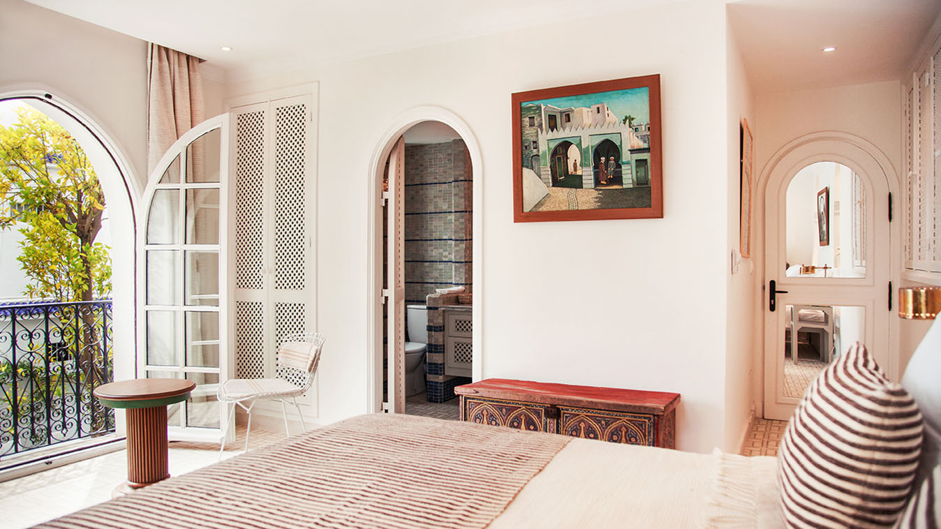Ten airy, contemporary rooms face the traditional central courtyard of this beautiful riad. Situated at the top of Tangier’s whitewashed medina, this restored boutique riad offers rooftop views of the sea and surrounding area, an award-winning French chef, and an art collection that makes each room come alive.