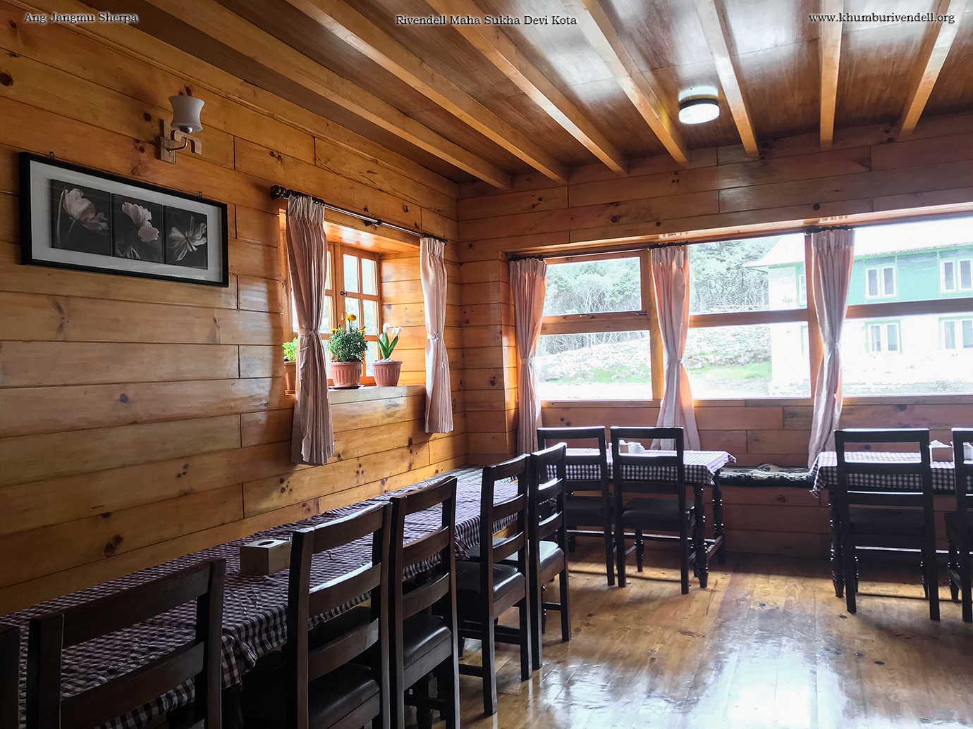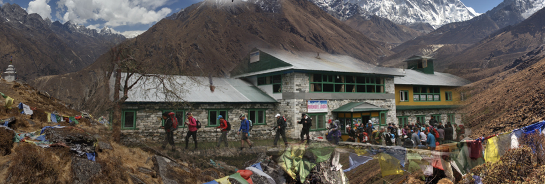 Rivendell Lodge is located in Deboche, a small village surrounded by Himalayan peaks. The lodge consists of several two-story houses with basic but comfortable rooms, each outfitted with WiFi, warm blankets, ensuite bathrooms, and hot showers. The upstairs restaurant features international cuisine served in a cozy space, surrounded by windows overlooking the mountain vistas.