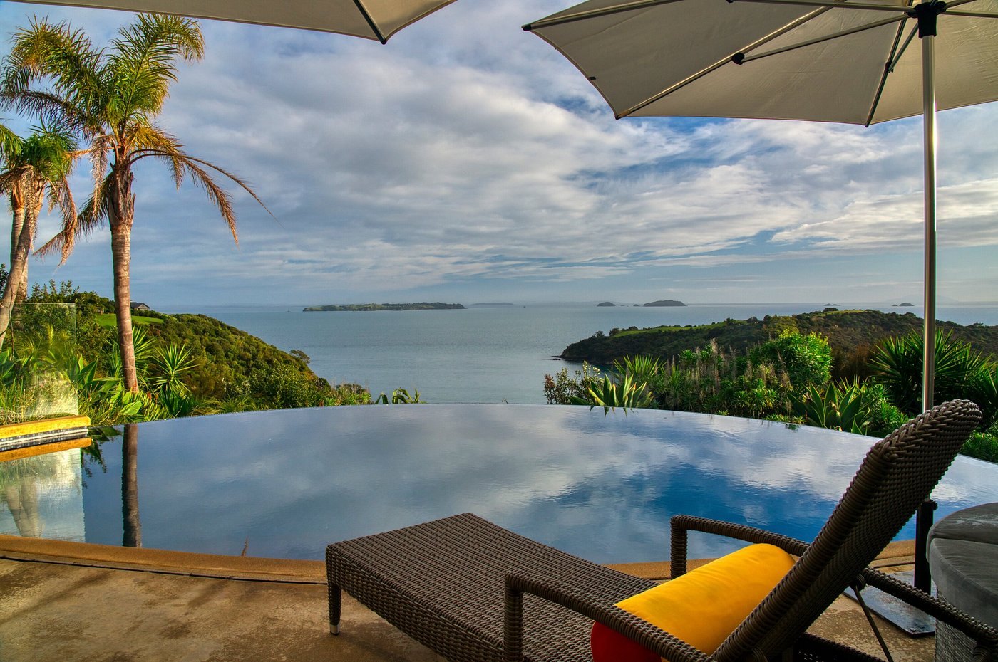 Perched on a cliffside with sweeping views over the Hauraki Gulf, Delamore Lodge is one of Waiheke Island’s most exclusive retreats. Designed in harmony with the natural landscape, the lodge features just four suites and a two-bedroom apartment, each opening onto private terraces overlooking the water. Guests enjoy world-class cuisine paired with award-winning Waiheke wines, a serene infinity pool that seems to flow into the ocean, and indulgent spa treatments inspired by Māori traditions.