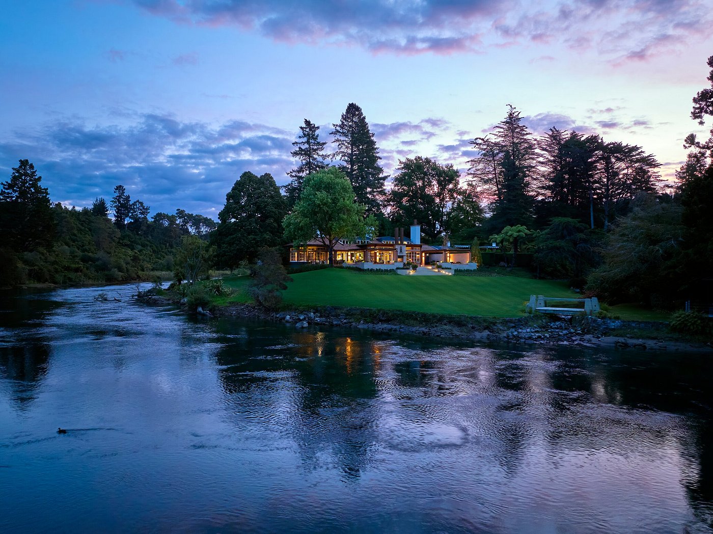 Huka Lodge is an exclusive luxury retreat set on the banks of the Waikato River near Taupo, surrounded by 17 acres of manicured gardens and native bushland. The lodge offers elegant suites and private residences, each with river views, refined interiors, and a strong sense of seclusion. Guests enjoy exceptional dining in a variety of intimate settings, from the main lodge to riverside pavilions, along with access to fly fishing, hiking, golf, and nearby geothermal attractions. With its legacy of understated elegance and world-class service, Huka Lodge is one of New Zealand’s most iconic luxury stays.
