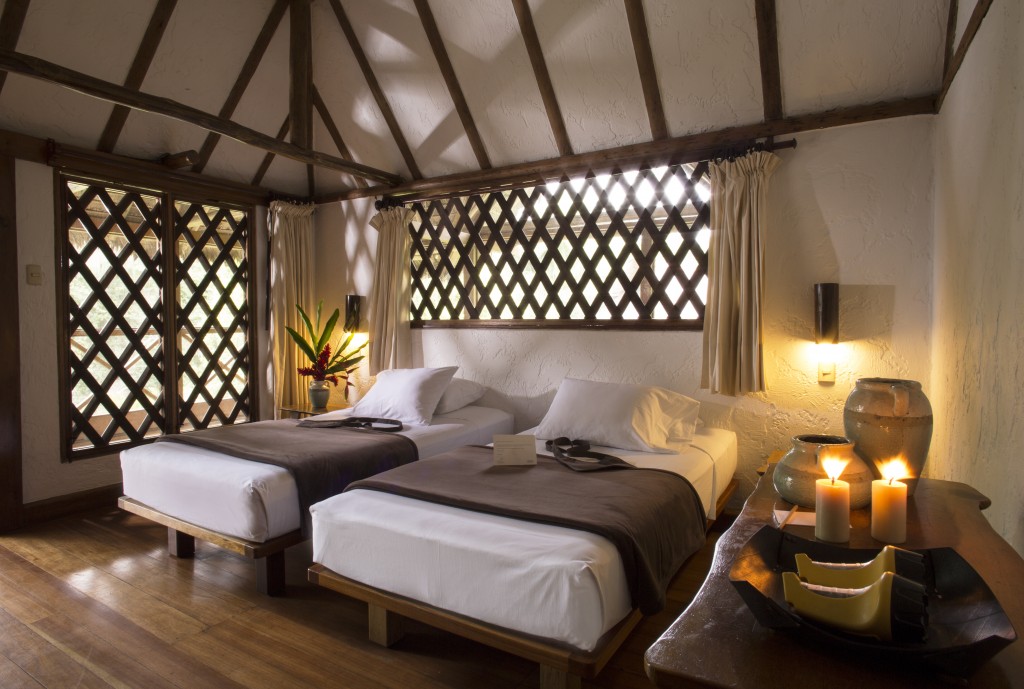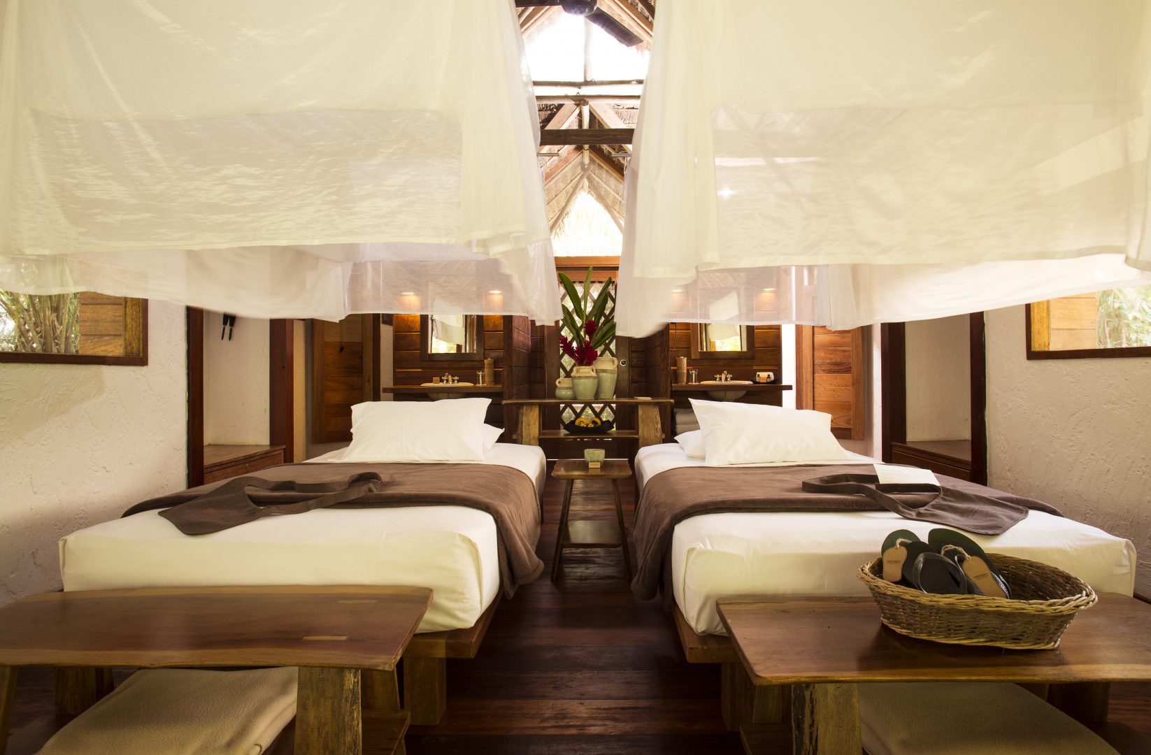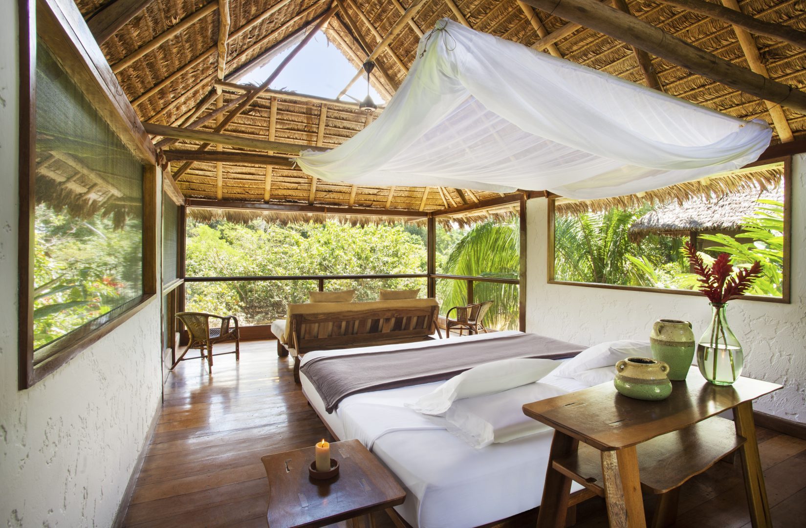 Built on a former cacao and rubber plantation, the Inkaterra Hacienda Concepción is nestled into over 2,000 acres of lush natural rainforest between the Tambopata National Park Reserve and the shores of the vast Madre de Dios river. The hacienda is composed of a comfortable main lodge, a Casa Grande with 8 twin rooms, and 7 individual cabañas. These are built in traditional Amazon style, with high ceilings, hand-woven thatched roofing, and locally-crafted furnishings made of reclaimed lumber. The cabins offer covered porches overlooking the private lake – perfect for wildlife spotting.