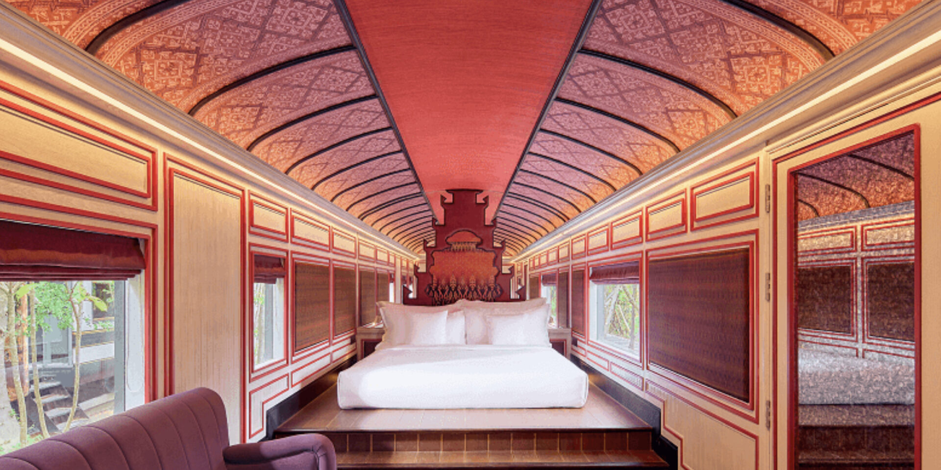 InterContinental Khao Yai Resort is nestled on the lush tropical landscape of numerous lakes and abundant trees, on the boundary of a national park and UNESCO World Heritage Site. Designed by award-winning architect and interior designer Bill Bensley, it draws inspiration from the area's history and role as a rail gateway to northeast Thailand during King Rama V's era. Featuring upcycled train carriages converted into luxury suites, each suite has high-end amenities and gorgeous antiques. Onsite guests can find a spa, botanical gardens, a state-of-the-art gym, and a pool surrounded by lush greenery.