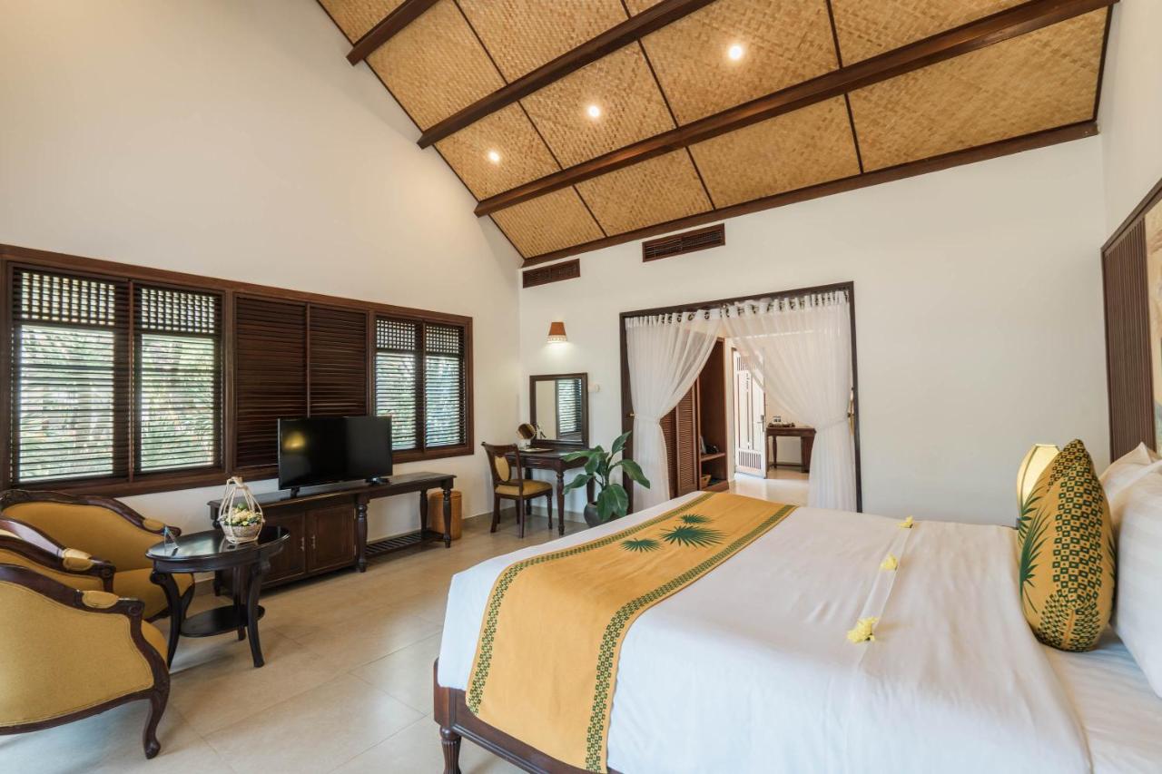 Nestled on Cua Dai beach and surrounded by palm trees is the Palm Garden Resort & Spa. This 3.5-star, resort-style hotel is an ideal choice for travelers looking to explore the cultural highlight of Hoi An, as well as unwind on a white-sand beach. 216 rooms and bungalows dot the beautiful grass lawn of Palm Garden Resort, and each room offers stunning views, private balconies, the option for connecting rooms for families, and tasteful, airy décor.