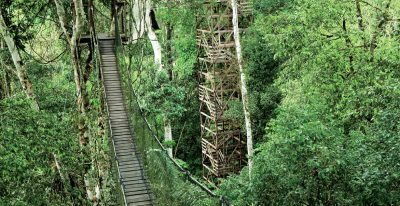Inkaterra Reserva Amazonica, an eco-luxury Amazon lodge in Peru, boasts a series of suspension bridges that connect two tall towers and the tops of the tallest trees, so after climbing up the tower’s stairs travelers can walk about ¼ mile among the treetops, observing myriad bird species and other wildlife that populate the Tambopata area. Sacha Lodge in Ecuador has a similar canopy bridge walkway, and the Delfin I, II and III Amazon cruises out of Iquitos, Peru also offer a canopy bridge walkway experience as part of their cruise itineraries.
