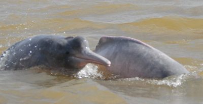 While I honed in on a Ferruginous Pygmy Owl, following the naturalist guide’s lead and coaxing the diurnal owl to swoop down near my kayak by imitating its call with short whistling sounds, my brother Mark, who joined me on the Tucano cruise, paddled his kayak around a treetop and discovered a family of squirrel monkeys gathered overhead. We observed the primates from our kayaks for a while, then, thinking our early morning wildlife experience was complete, began to paddle back to the Tucano – only to be joined by a pair of Grey River Dolphins, who graciously escorted us back to our ship for breakfast.