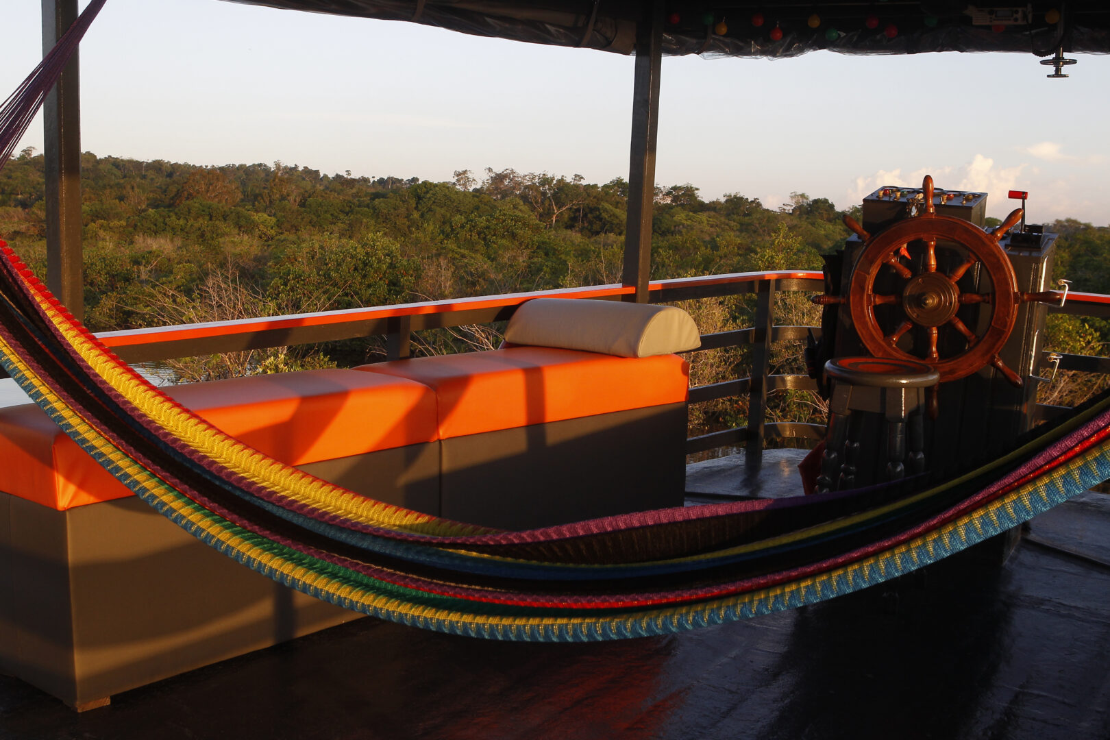 Enjoy your breakfast in a remote region of the Negro River, listening to the song of macaws, toucans, and other singing birds of the forest. Today you’ll enter Anavilhanas National Park, one of the largest river archipelagos in the world. As you sail into the park, relax in a deck chair or in a hammock, while watching out for wildlife that might be resting on the river’s edge.