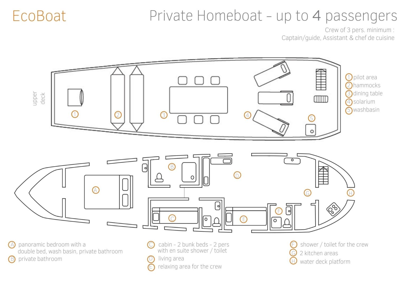 • Capacity: 4 passengers, as well as guide, chef, and personal assistant