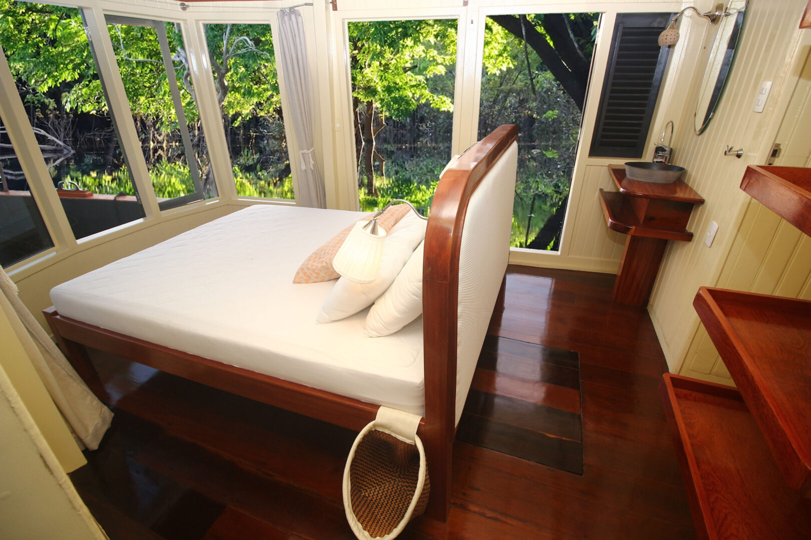 • The Panoramic Suite has a double bed, floor-to-ceiling windows, and a walk-in wardrobe