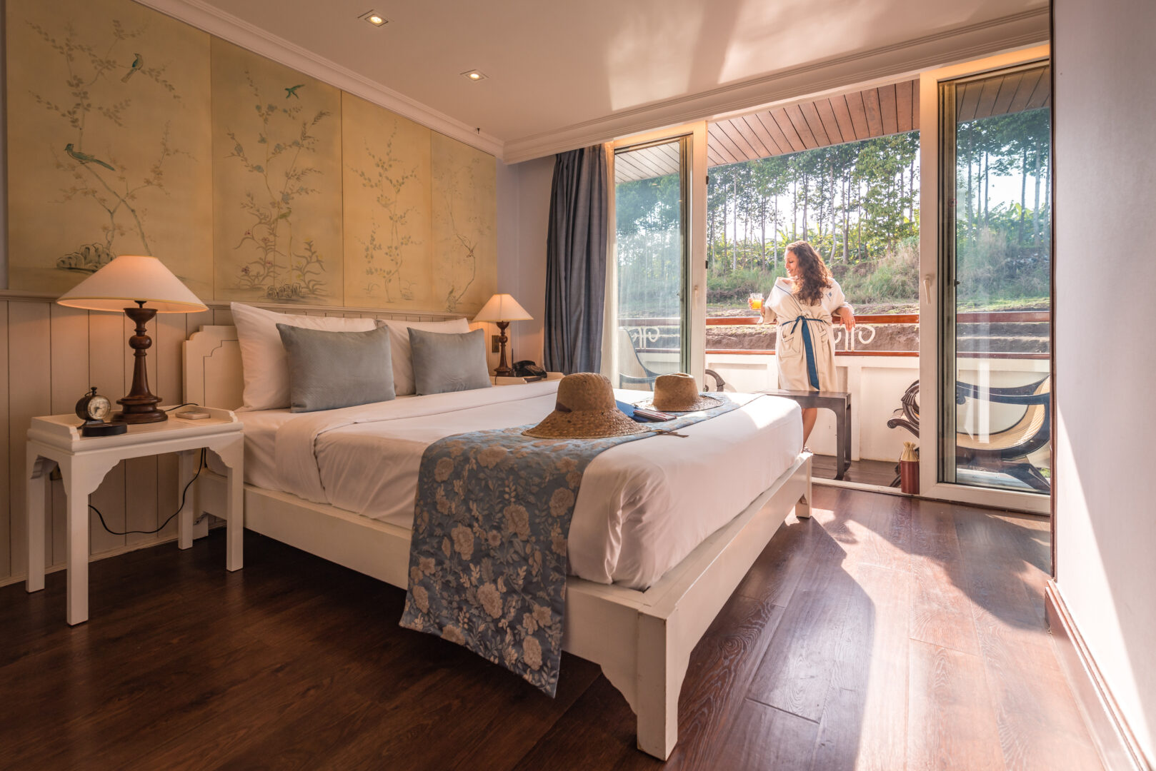 The Jayavarman has 26 spacious and luxuriously-appointed cabins. Located on the main deck, there are 14 Superior Staterooms measuring 21sqm. There are 11 Deluxe Staterooms on the upper deck, measuring 30sqm. Both superior and deluxe rooms feature a private deck and floor to ceiling windows. The 2 Signature Suites are located on the upper deck. At 27sqm they’re located at the very front of the ship, offering unparalleled views from the private balcony. They’re also serviced by a private butler.