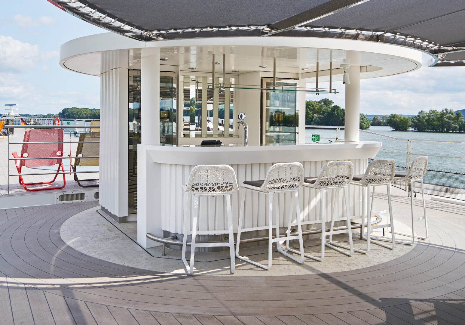 The Riverside Ravel is a luxury riverboat in France, cruising on the Rhône and Saône rivers. This chic boat offers luxe suites with floor-to-ceiling windows, a restaurant serving 5-star French cuisine relating to the regions it sails through, ample lounge areas to view the passing riverbanks from, an indoor swimming pool, and a state-of-the-art spa and fitness center.