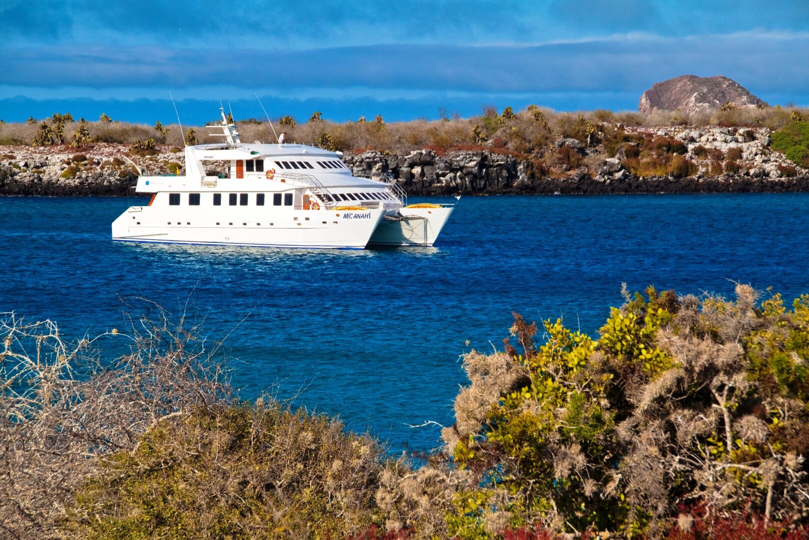 The Anahi is a comfortable and well-appointed first-class catamaran with a high standard of service. The ship accommodates 16 passengers in 8 cabins. The yacht offers spacious and pleasant common areas, a library, movie room, dining room, and lounge. On the upper sundeck, there is a bar, lounge area, and Jacuzzi. All excursions are led by an experienced bilingual naturalist guide and include hiking, snorkeling, and kayaking.