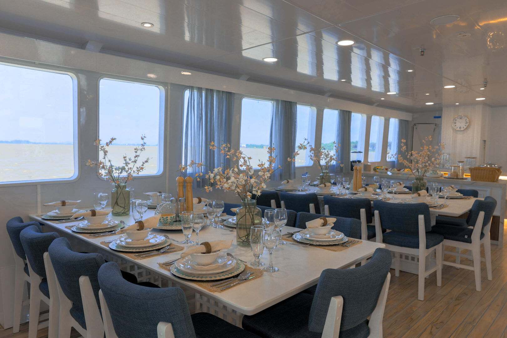 • 2 Lower Deck Cabins, 168.89 sq. ft., with twin or matrimonial beds, no windows or portholes
