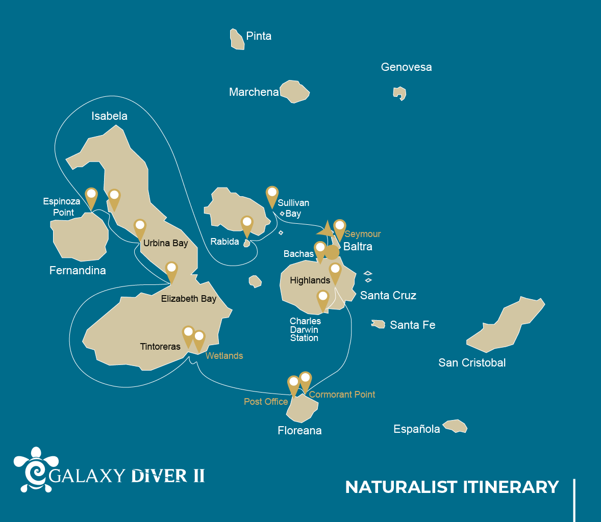 Fernadina Island: Douglas Cape (1 dive) / Isabela Island: Vincente Roca Point (1 dive)