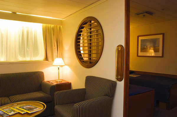 • The Endeavour II has four Category 1 cabins on the main deck and A deck, fifteen Category 2 on the upper deck and main deck, four Category 3 cabins on the main deck that can accommodate two or three people, seventeen Category 4 cabins on the upper deck, and two Category 5 upper deck suites with separate sitting areas and large view windows. There are also fourteen solo cabins located on the main deck, A deck, and upper deck.