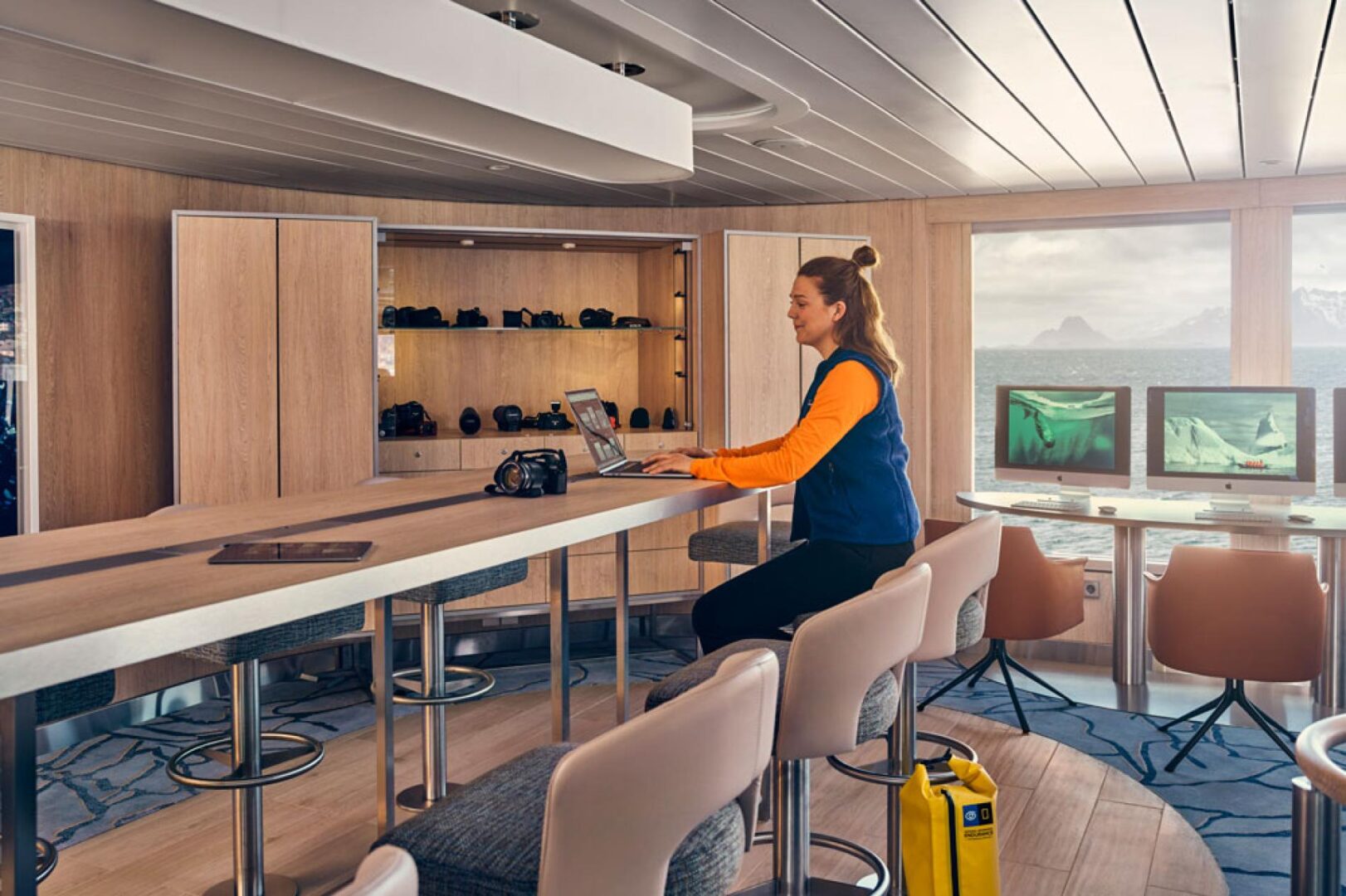 The National Geographic Endurance accommodates 128 guests in 71 spacious cabins—including 2 newly added solo cabins. All accommodations face outside and have large windows or balconies, private bathrooms, individual climate control, Wi-Fi, and an expedition command center with tablets and USB/mobile device docking.