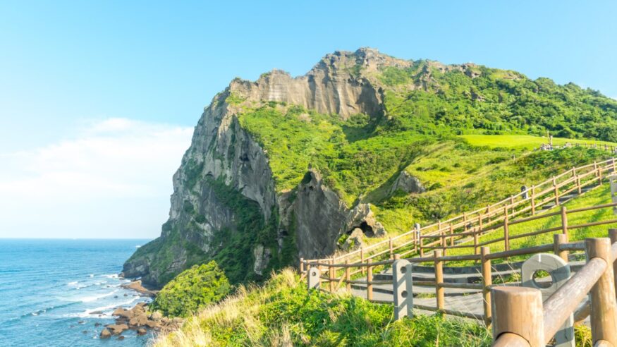 After breakfast, meet your guide for a full day exploring Jeju. Begin at Hallim Park, a beautifully landscaped botanical garden home to themed areas like Palm Tree Avenue, the Bonsai Garden, and subtropical greenhouses. Stop for lunch at a local restaurant before continuing to the O’sulloc Tea Museum. Learn about Korea’s tea culture, explore scenic green tea fields, and sample a variety of teas, being sure not to miss the museum’s signature green tea ice cream.
