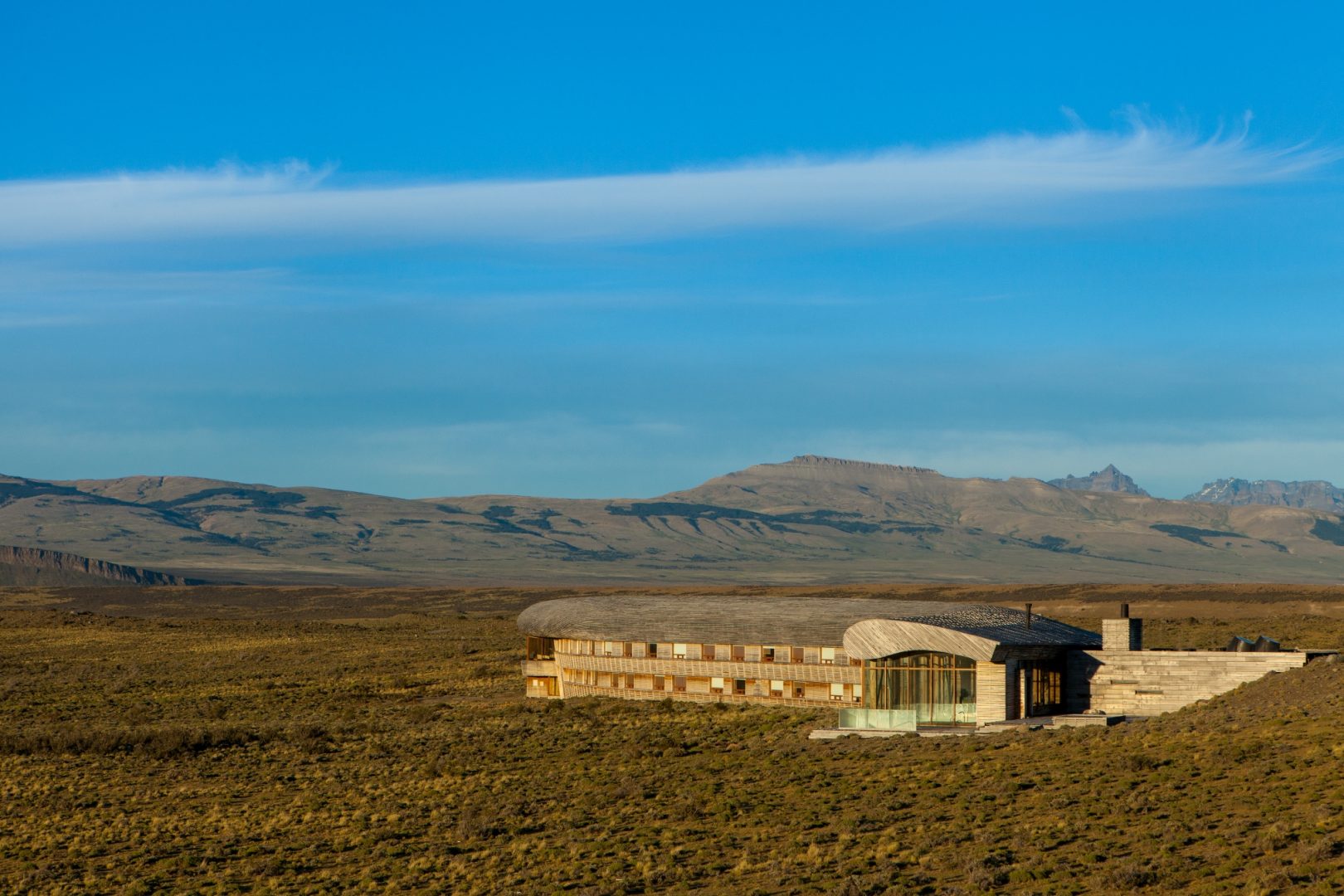 A former cold-storage plant houses this 57-room heritage hotel, located near Puerto Natales. Since Chile has strict conservation rules, the hotel architect left the original external brickwork intact and installed a funicular to take guests down from the hotel entrance to the reception area. The hotel restaurant and bar, carved from a cavernous chamber, is known for its octopus and king crab specialties. Edwardian style rooms feature mahogany writing desks, brass lamps, and sepia prints. The hotel also features a private collection of equipment and artifacts. The Singular is located about 3 miles outside Puerto Natales on a remote stretch of waterfront land.