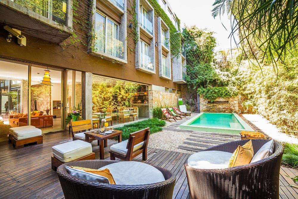 Mine Hotel is a boutique hotel located on a quiet street in the Palermo Soho neighborhood of Buenos Aires. The property features 20 rooms and suites with warm wood finishes, large windows, and balconies in select categories overlooking the garden or street. Facilities include an outdoor swimming pool set in a courtyard, a lounge and bar area, and a breakfast room opening onto the garden. The hotel’s intimate scale and residential setting offer a calm retreat within one of the city’s most vibrant districts.