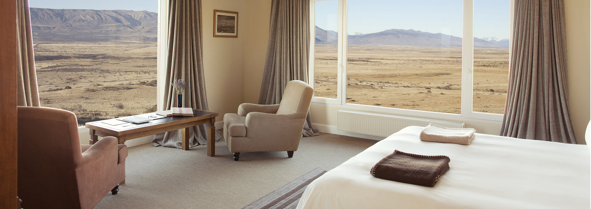 Fly to El Calafate, gateway to Los Glaciares National Park in Argentine Patagonia. Upon arrival you will be transferred out of the city to Eolo, a Relais & Châteaux property and the most refined accommodation option in the area. From Eolo’s 10,000 acre property enjoy privileged views of the Patagonian steppe and mountains.