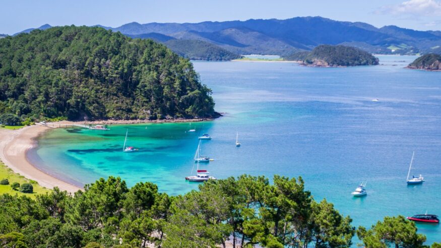 Board the ferry back to Auckland and meet your private driver for the journey north to the Bay of Islands. Located on the east coast of Northland, this scenic region is known for its warm climate, sheltered waters, and historic significance. The Bay of Islands features more than 150 islands scattered across a stunning coastal seascape and is home to the Waitangi Treaty Grounds, where New Zealand’s founding document was signed. Today, it’s a favorite destination for its relaxed pace, charming seaside towns, and opportunities for sailing, fishing, coastal hikes, and fine dining.