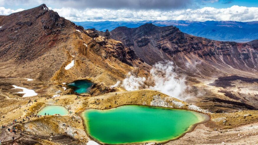 Hike past active craters, ancient lava flows, volcanic steam vents, and technicolored emerald lakes, all with views of Mount Tongariro and the towering Mount Ngauruhoe in the backdrop. The hike takes approximately seven hours on the trail, with an additional two to three hours for return travel from Taupō. Though challenging, the trail rewards hikers with some of the most spectacular volcanic scenery in the southern hemisphere. It demands good physical fitness, surefootedness, and a sense of adventure!