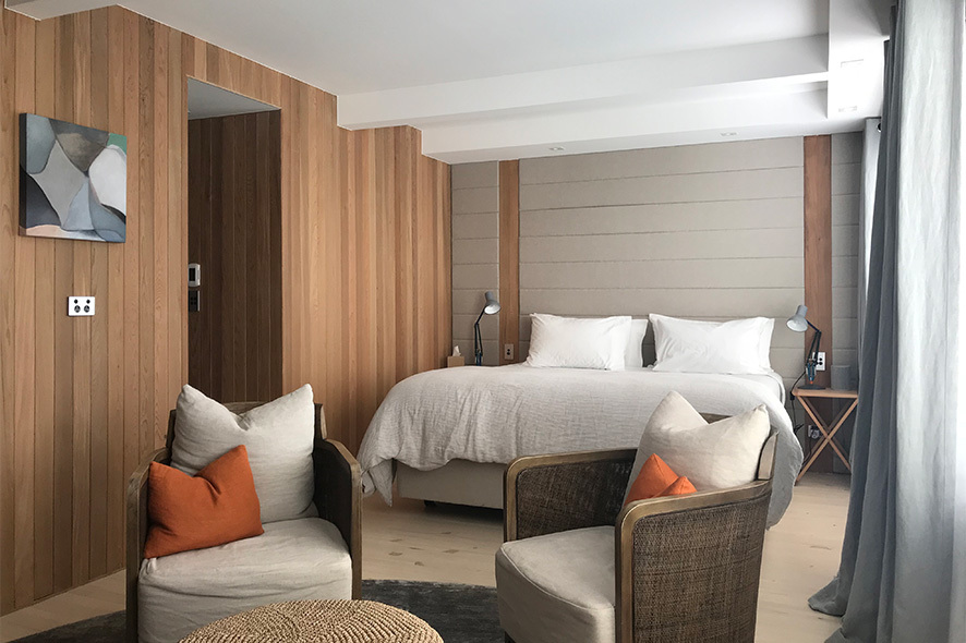 The afternoon offers plenty of ways to relax or explore: cycle along quiet country roads on a hybrid bike, indulge in a massage at the Woodland Massage Studio, or enjoy a friendly game of croquet, pétanque, or kubb on the games lawn. Cool off in the swimming pool, and as evening falls, soak in the outdoor jacuzzi under a star-filled southern sky.