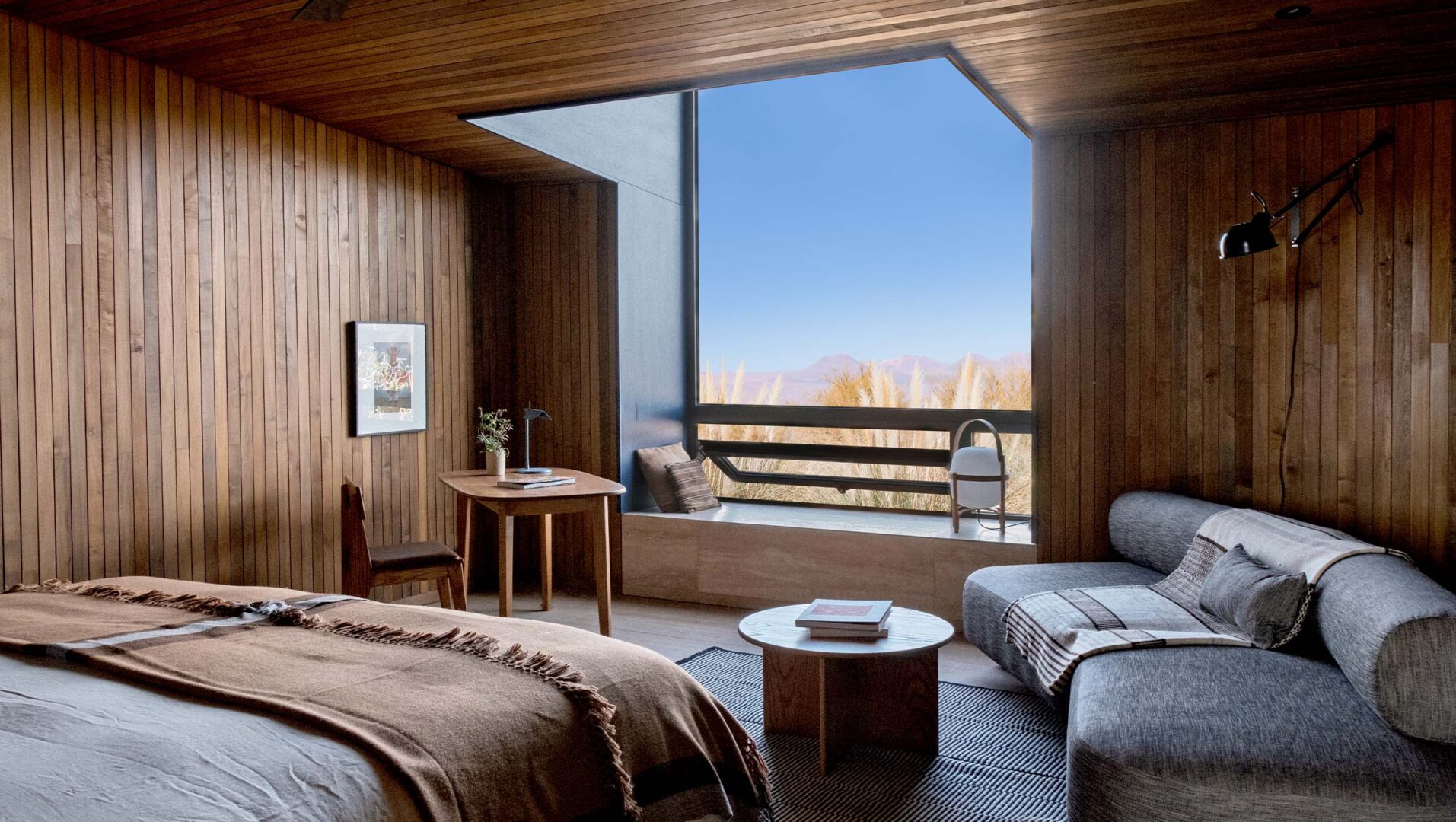 Tierra Atacama is a contemporary desert lodge set on the edge of San Pedro de Atacama, with wide open views toward the Licancabur Volcano and the Atacama’s sweeping salt flats. The property features adobe-inspired rooms and suites with private terraces, outdoor showers in select categories, and large windows framing the desert landscape. Facilities include an expansive spa with indoor and outdoor pools, a steam room and Jacuzzi, a restaurant and bar, and tranquil gardens shaded by native trees. The lodge’s architecture incorporates local materials and open-air spaces that connect guests directly to the stark beauty of the Atacama Desert.